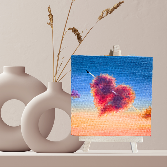 Adorable Desk Decor - Original Mini Canvas Painting - Cupid Cloud