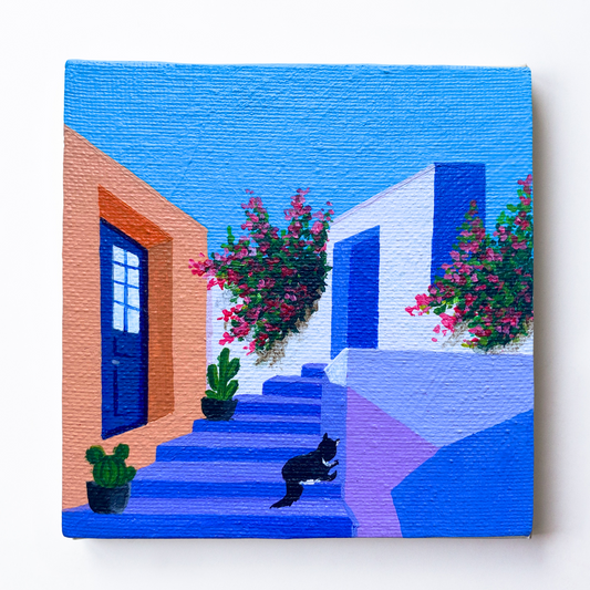 Mini Canvas Original Painting | Adorable Desk Decor | City Blue