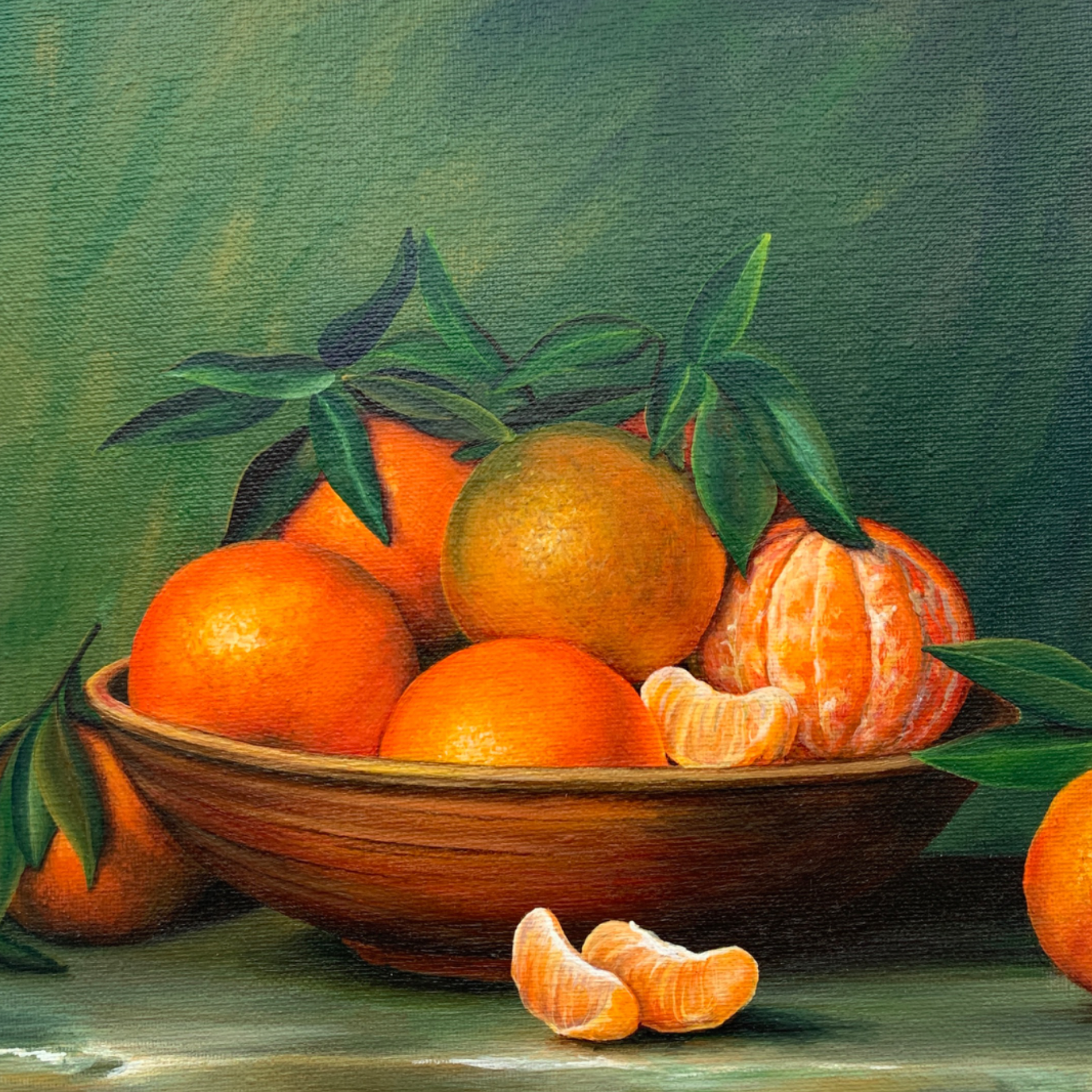 Original Acrylic Painting of Bowl of Oranges | Vibrant Still Life Canvas Art | Handcrafted Home Decor