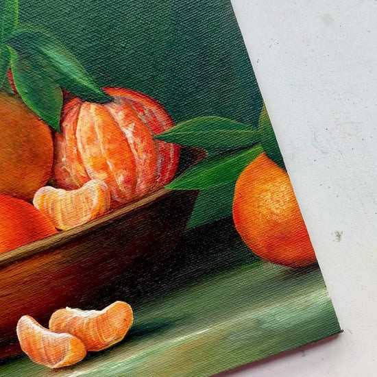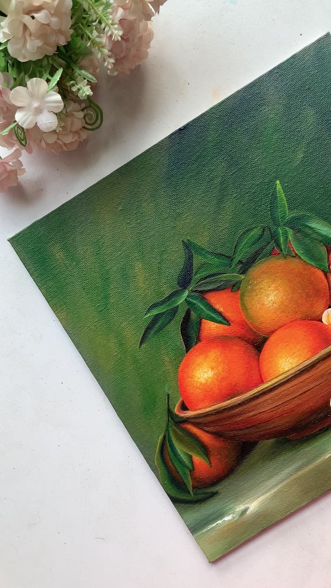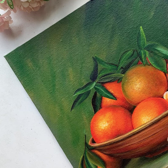 Original 100% hand-painted Bowl of Oranges Canvas Painting by PaintellectualPriya is perfect for your home, bedroom, living room, nursery room, office, wall art decor, or it can be a gift for your friend or art lovers.